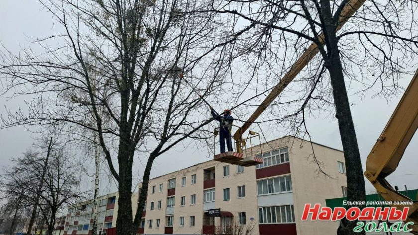 Сегодня они производят обрезку омелы с деревьев по Мозырскому тракту и ул. 50 лет СССР.