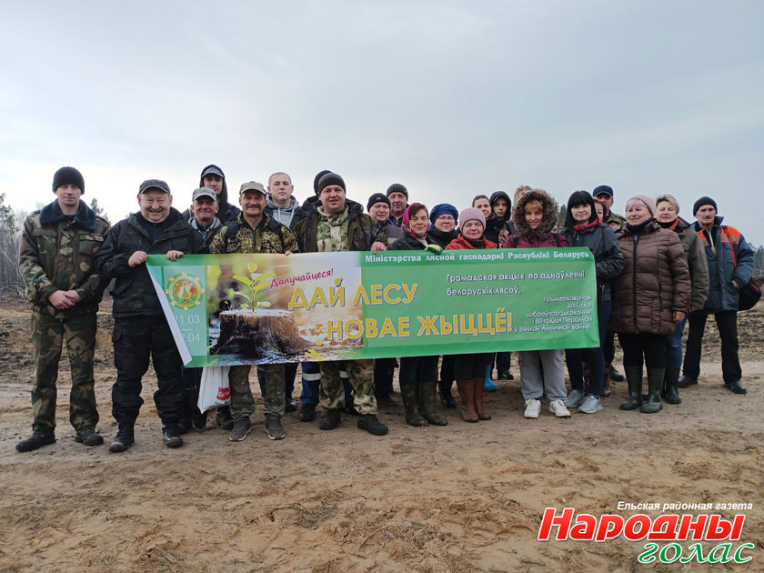 Группа работников организаций и предприятий Ельщины прибыла в Лешнянское лесничество Мозырского района для посадки сосны и берёзы на пострадавших от урагана делянках.