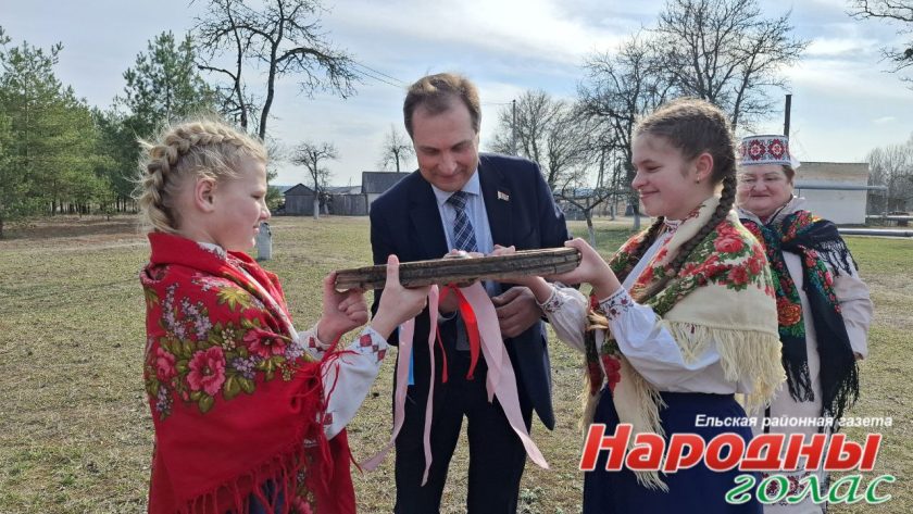 Председатель Ельского районного Совета депутатов Оксана Захарченко и председатель Валавского сельского Совета Пётр Коркуц приняли участие в весеннем обряде.