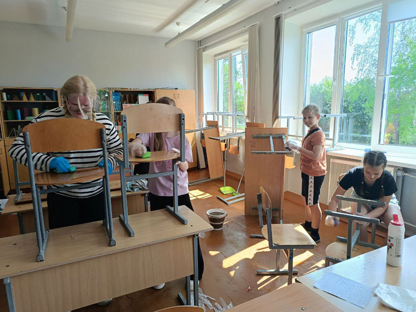 Во время летних каникул учащиеся Ельского района активно помогают в благоустройстве школьных территорий: ухаживают за цветниками, подметают дорожки и наводят порядок в классах.