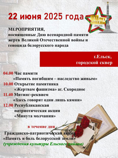 В Ельском районе пройдут памятные мероприятия, посвящённые Дню всенародной памяти жертв Великой Отечественной войны и геноцида белорусского народа.