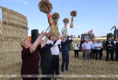 «Сегодняшним праздником «Зажынкі» стартует уборка на Гомельщине фактически во всех районах. Мы с Научно-практическим центром НАН Беларуси по земледелию выработали структуру, которая позволяет планомерно вести уборку, уменьшать нагрузку на комбайн. У нас подошли хлеба 42 тыс. га — это озимый ячмень. Готовность комбайнов на сегодняшнее утро фактически 90%, что дает возможность полным фронтом идти на уборку этой культуры», — отметил глава региона.