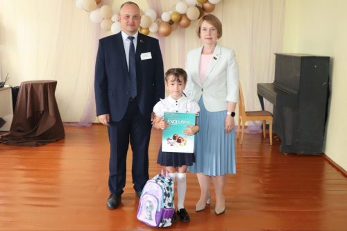 Екатерина Зенкевич в рамках акции «Соберем портфель первокласснику» вручила ранец и набор школьных принадлежностей, а также сладости первокласснице Полине Цюрик, которая 1 сентября пойдет в первый класс государственного учреждения образования «Антоновская средняя школа Жлобинского района».