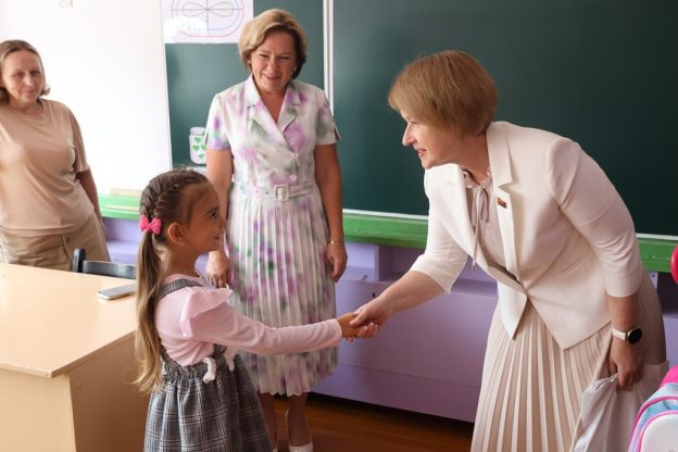 Приятной миссией стало вручение председателем областного Совета депутатов Екатериной Зенкевич портфеля с набором школьных принадлежностей и сладостей будущей первокласснице. Сенатор поздравила Милану Леоненко с началом нового этапа в жизни и пожелала, чтобы учёба всегда была в радость, добиваться успехов и получать отличные отметки.