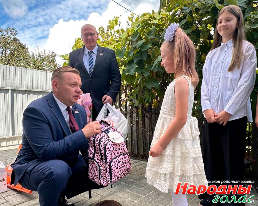 В преддверии нового учебного года и в рамках акции «Соберём портфель первокласснику» заместитель председателя Гомельского областного исполнительного комитета Дмитрий Алейников, начальник управления образования облисполкома Руслан Смирнов с представителями местной власти посетили многодетную семью Александра и Майи Лебедевич, проживающую в г. Ельск.