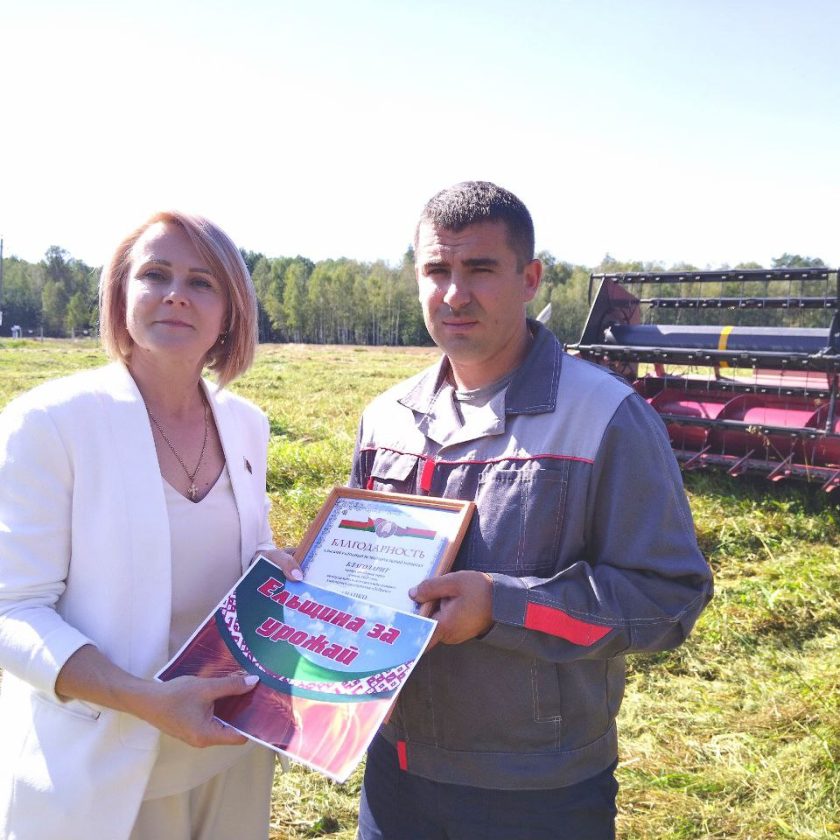 К поздравлениям присоединилась и Мария Змушко, и. о. начальника управления сельского хозяйства и продовольствия Ельского райисполкома. Она пожелала комбайнеру дальнейших трудовых успехов, здоровья и благополучия.