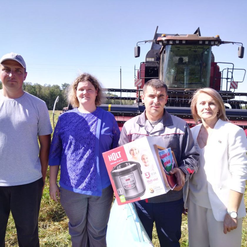 Ельщина продолжает пополнять закрома Родины зерном нового урожая. Очередного комбайнера-тысячника чествовали в поле представители местной власти и КСУП «Добринь».