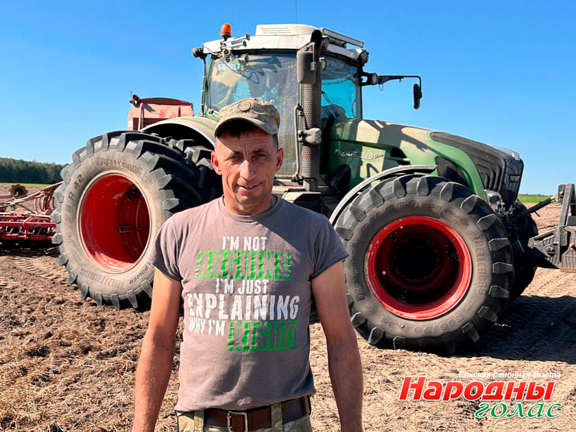 Среди тех, кто трудится на осенних полях, – опытный механизатор Вячеслав Беляк. Во время уборки зерновых он работал на комбайне. После окончания жатвы механизатор пересел на трактор с сеялкой. Во время нашей встречи на поле Вячеслав Беляк вел сев озимого ячменя. Сеял аккуратно, следил за работой сеялки, зная, что некачественная работа ведет к недобору урожая.