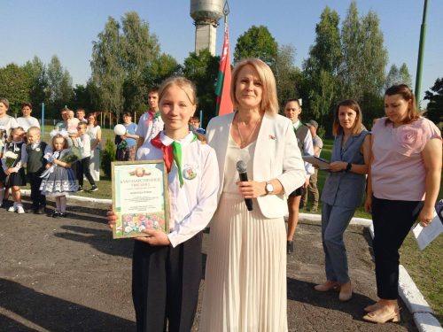Для ученицы Скороднянской школы Екатерины Мороз День знаний стал особенным. И не только потому, что 1 сентября — начало нового учебного года, а еще и потому, что на торжественной линейке она получила сертификат из рук председателя Ельского районного Совета депутатов Оксаны Захарченко.