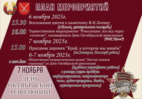 План мероприятий ко Дню Октябрьской революции в Ельском районе.