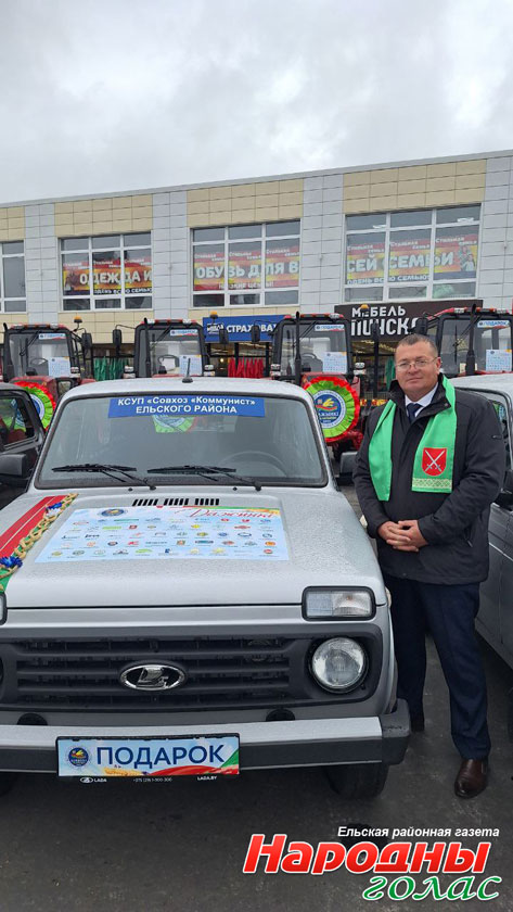 Сертификат на автомобиль губернатор Гомельской области Иван Крупко вручил директору КСУП «Совхоз Коммунист» Дмитрию Баранкевичу.