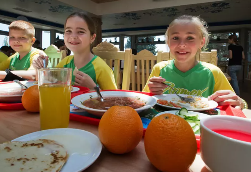 В соответствии со статьей 40 Кодекса об образовании, питание предлагается всем учащимся в учреждениях общего среднего образования. Бесплатное питание предоставляется всем учащимся 1-4-х классов, учащимся 5-11-х классов, проживающим и обучающимся в сельских школах, детям из других льготных категорий (многодетные и малоимущие семьи, дети-инвалиды, учащиеся спортивных классов и др.). Формат питания может быть одноразовым, двух- или трехразовым. При платном питании родители оплачивают только стоимость продуктов — услуги по приготовлению включены в государственную поддержку.