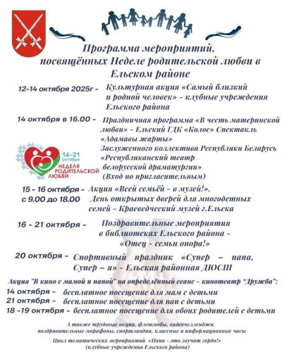 Приглашаем вас окунуться в атмосферу тепла и заботы! В рамках Недели родительской любви в Ельском районе пройдут увлекательные мероприятия для всей семьи.