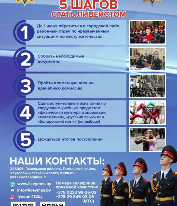 22 ноября 2025 года в 11:00 в Лицее МЧС состоится Дени открытых дверей (адрес: Гомельская область, Гомельский район, Улуковский сельский совет, п.Ильич, ул.Н.Сковородина,д.1).