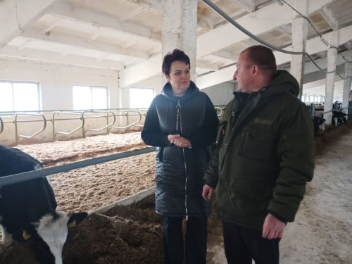 Алла Валериевна поинтересовалась у директора КСУП «Скороднянский» Юрия Сухоцкого условиями содержания КРС и качеством кормов.
