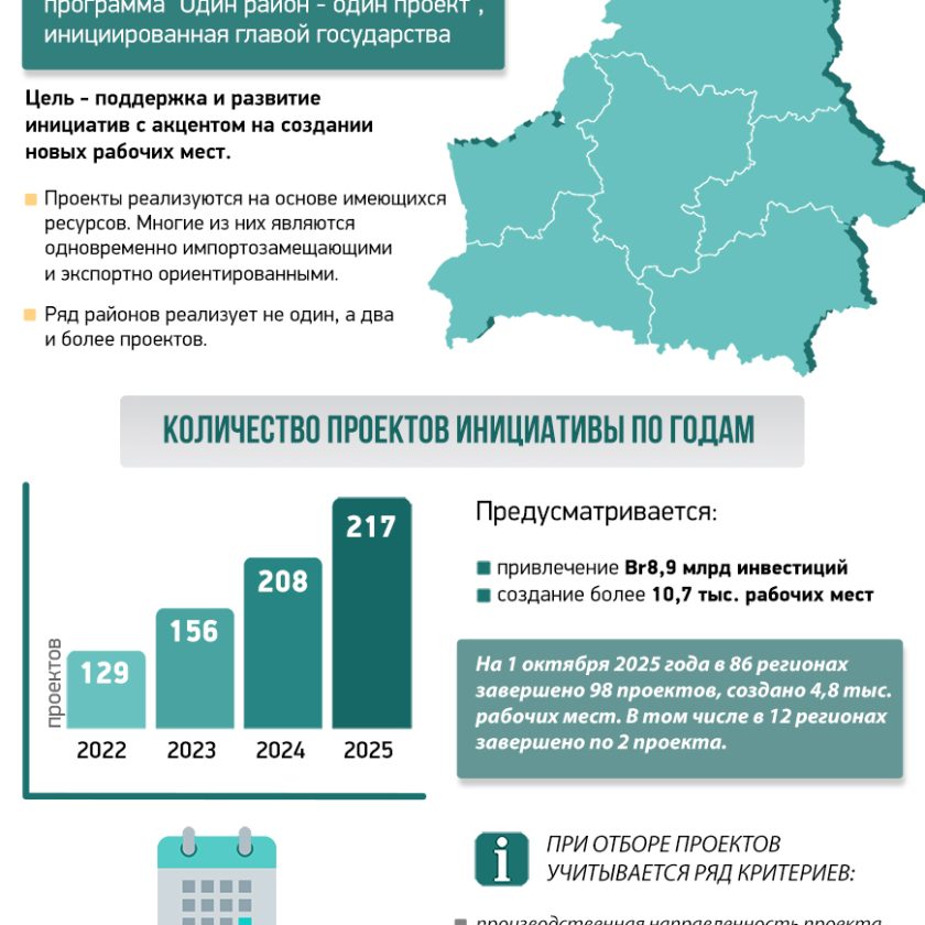 В Беларуси с 2022 года реализуется программа «Один район — один проект», инициированная главой государства.