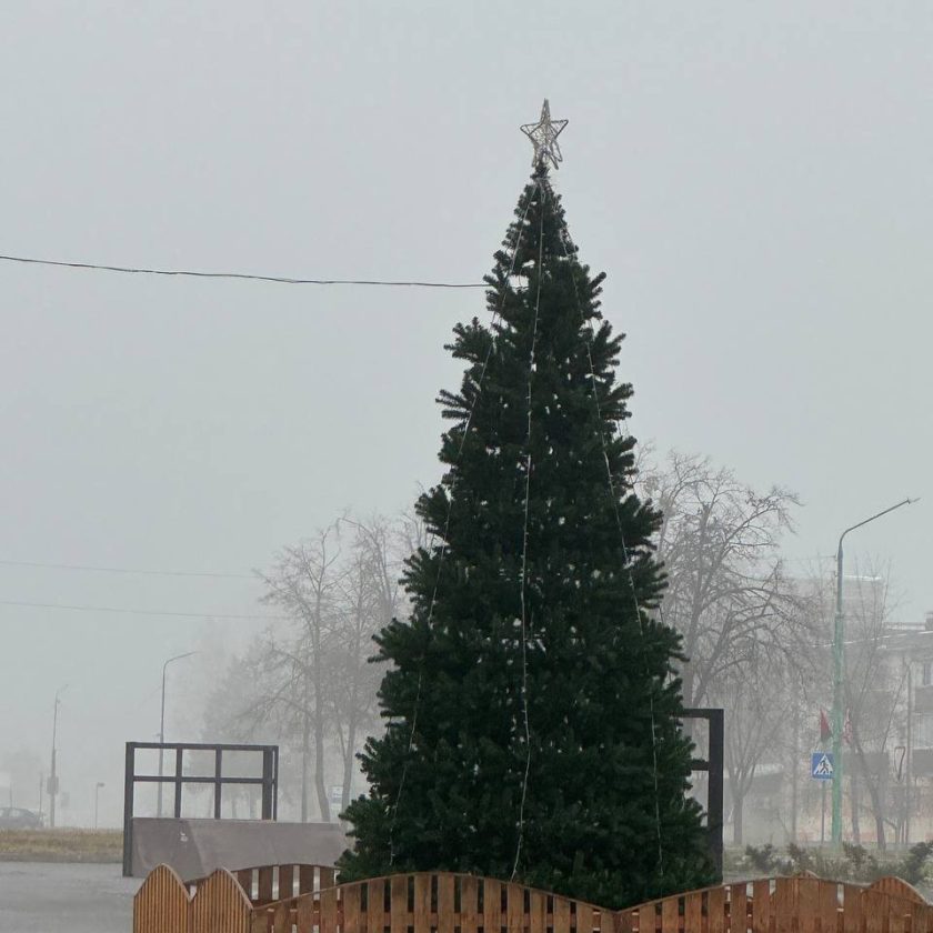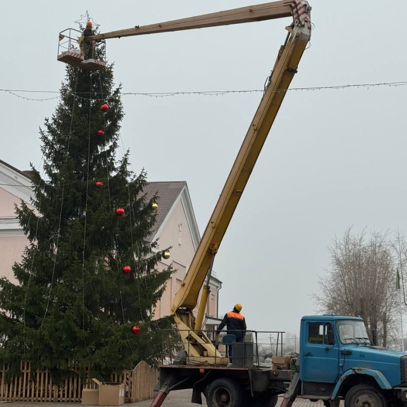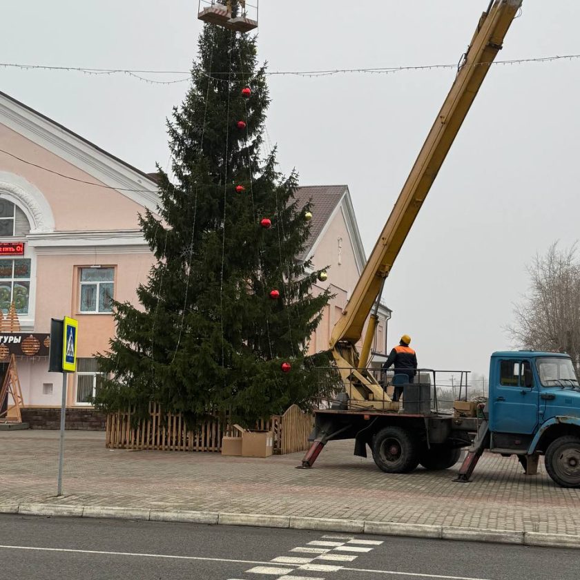 Работники КЖЭУП «Ельское» сегодня украсили гирляндами и разноцветными шарами новогодние ели на центральной площади города и на улице 50 лет СССР.