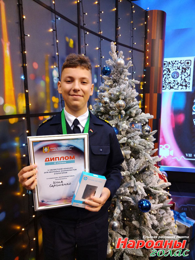 В Гомельском телецентре состоялась церемония награждения победителей и призеров конкурса юных блогеров и журналистов. Достойную награду получил Илья Сергиенко, участник клуба «Юный журналист» Ельской районной газеты «Народны голас». Он удостоен Диплома III степени в номинации «Журналистика».
