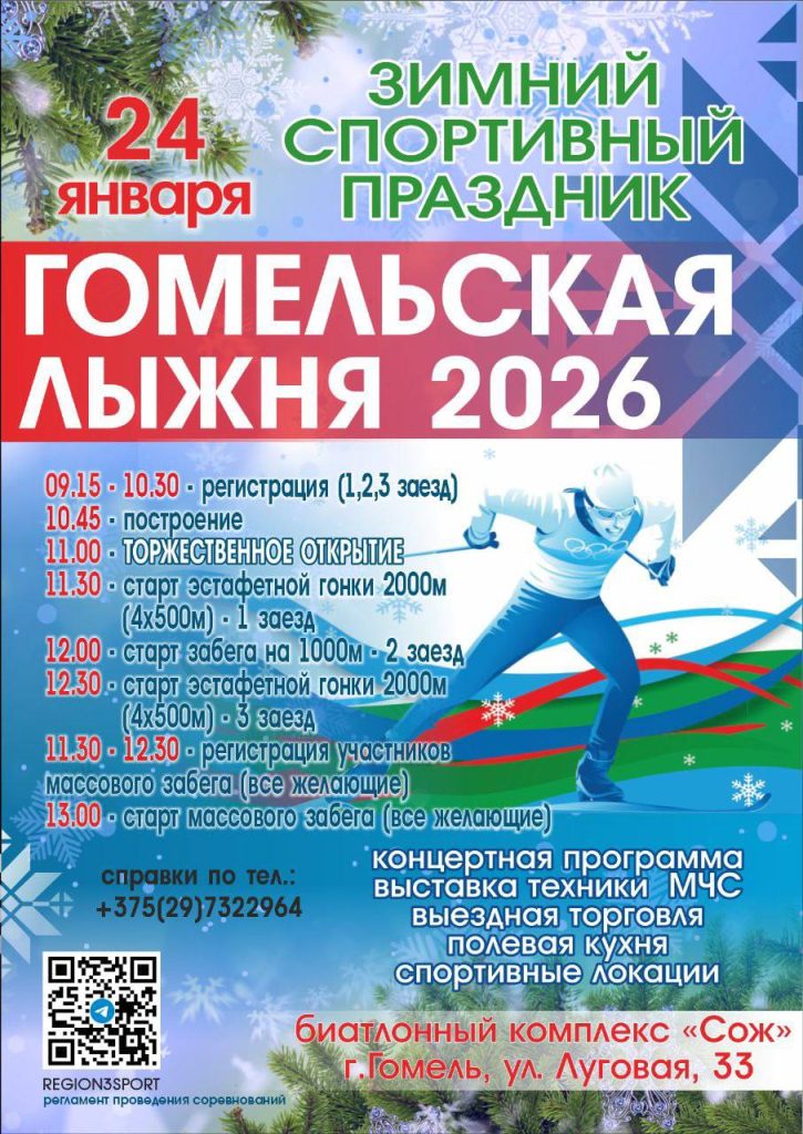 Уже в эту субботу, 24 января, на биатлонном комплексе «Сож» областного центра (ул. Луговая, 33) пройдет одно из главных спортивных событий года – «Гомельская лыжня».