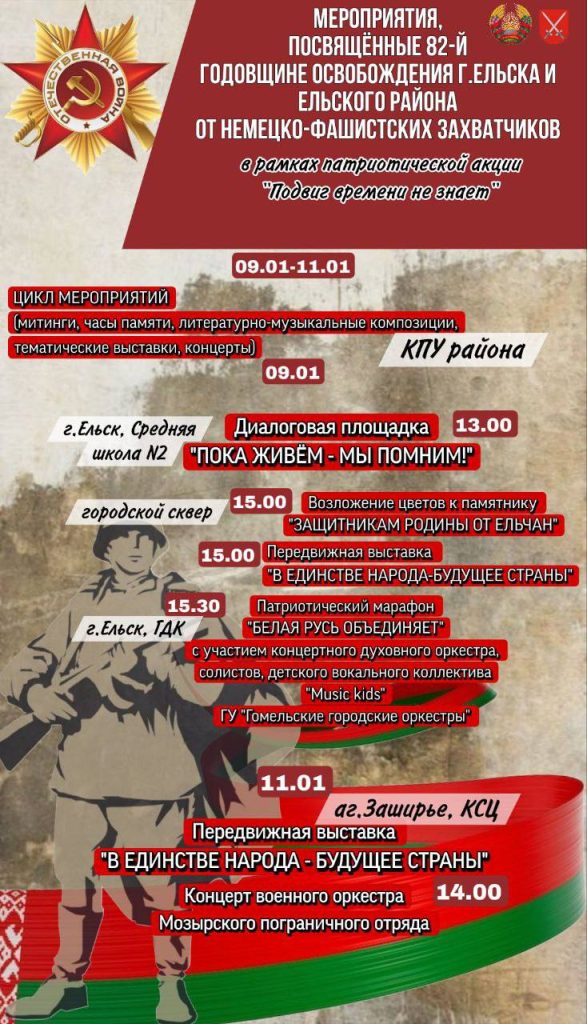 Афиша праздничных мероприятий, посвященных дню освобождения Ельского района от немецко-фашистских захватчиков.