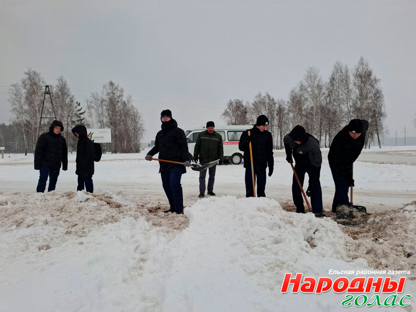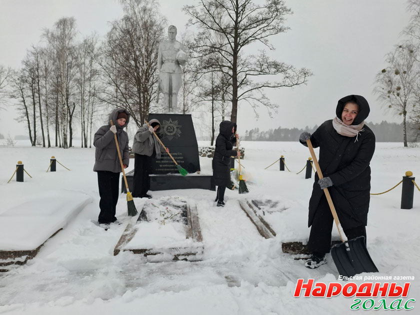 Активисты молодёжного движения «Искра» районного отделения Белорусской партии «Белая Русь» вместе с членами БРСМ из СШ № 2 г. Ельска очистили снег у памятника воинам-десантникам на подъездной, погибшим при освобождении райцентра в декабре 1943 года.