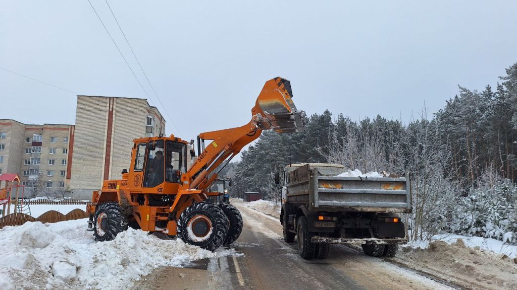 Коммунальная и дорожная службы Ельского района продолжают работы по уборке снега, обработке противогололедной смесью улиц райцентра, сельских населенных пунктов, дорог республиканского и местного значения.