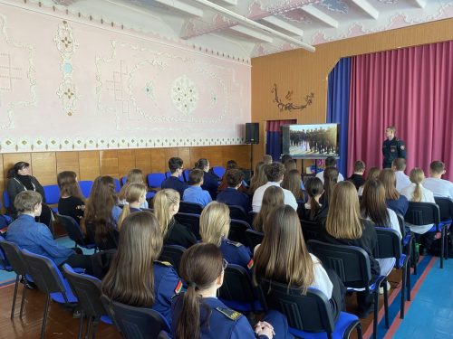 В ходе встречи курсант Университета гражданской защиты МЧС Республики Беларусь Пискун Вадим  подробно представил информацию о факультетах и специальностях, предлагаемых учебным заведением. Ребята узнали о широком спектре направлений подготовки. Особое внимание было уделено различным формам получения образования, что позволило учащимся оценить свои возможности и выбрать наиболее подходящий вариант.