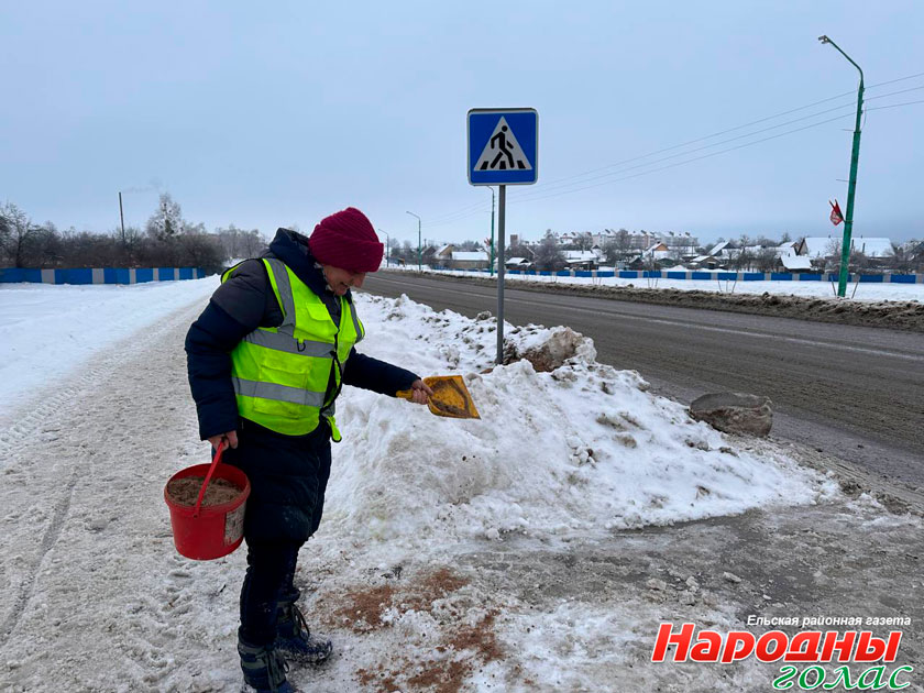 КЖЭУП «Ельское» проводит работы по расчистке от снега и обработке противогололедными материалами улично-дорожную сеть.