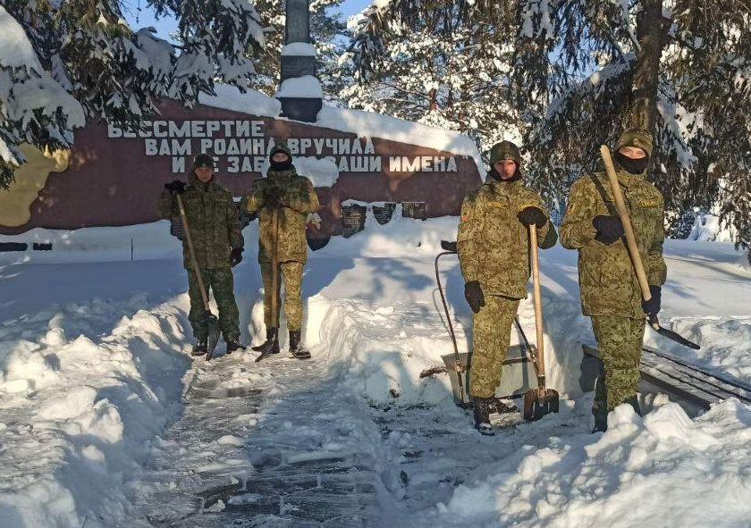Накануне пограничники расчистили от снега дорожку к памятнику.
