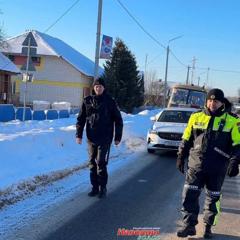 Около Ельской районной гимназии, где проходит РЦЭ, дежурят госавтоинспекторы, обеспечивая безопасность на дороге.