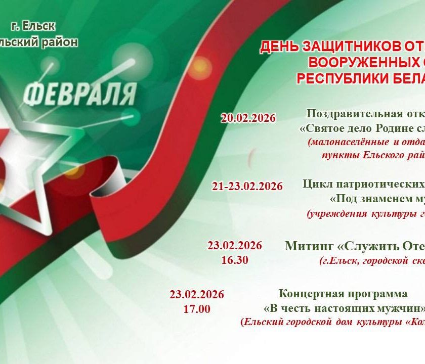 АФИША! Праздничные мероприятия ко Дню защитников Отечества и Вооруженных Сил Республики Беларусь в Ельском районе