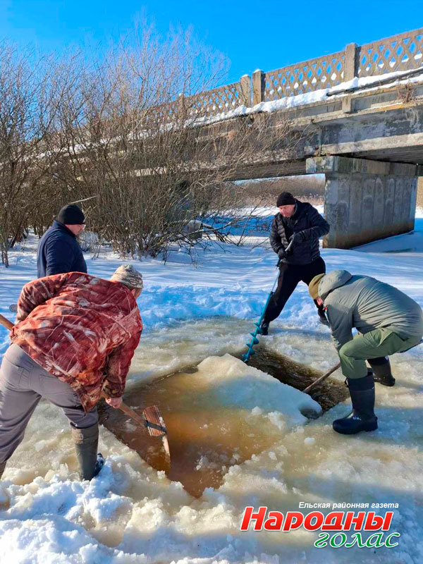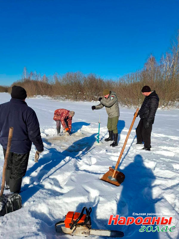 Так, в точке отбора проб на указанном участке растворенный кислород находится в пределах 1,6 мгОг/дм3 при пороговом значении >4 мг02/дм3, — пояснил начальник Ельской районной инспекции природных ресурсов и охраны окружающей среды Андрей Гриневич. — Поэтому работниками Ельской районной инспекции природных ресурсов и охраны окружающей среды, Скороднянского сельского исполнительного комитета, РГОО «БООР» с участием общественности, на участке р. Словечно, вблизи аг. Скородное проведены мероприятия по предупреждению заморных явлений, такие как механическая и воздушная аэрация воды, очистка водотока от снега и обустройство прорубей или лунок.