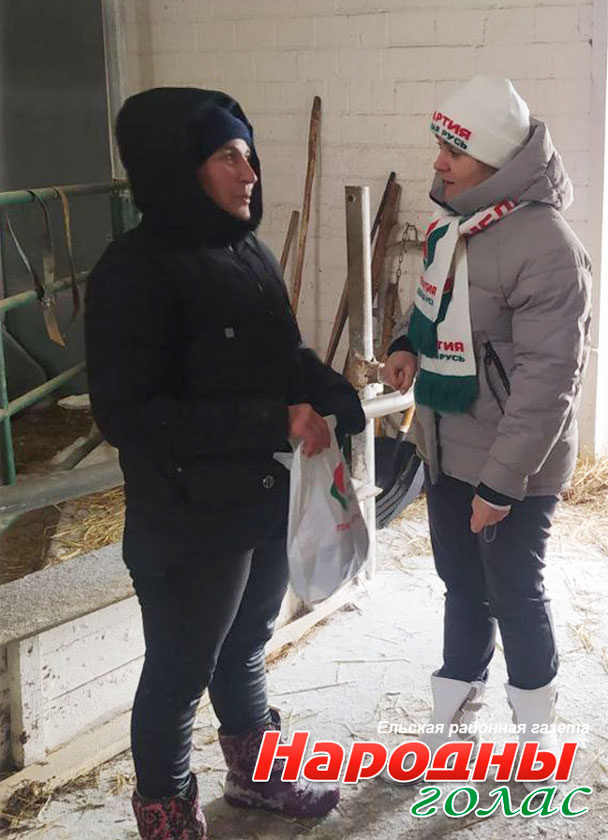 В рамках акции Ельского районного отделения партии «Белая Русь» активисты партии посещают фермы района и вручают женщинам-животноводам небольшие подарки, которые помогут им согреться в холодное время.