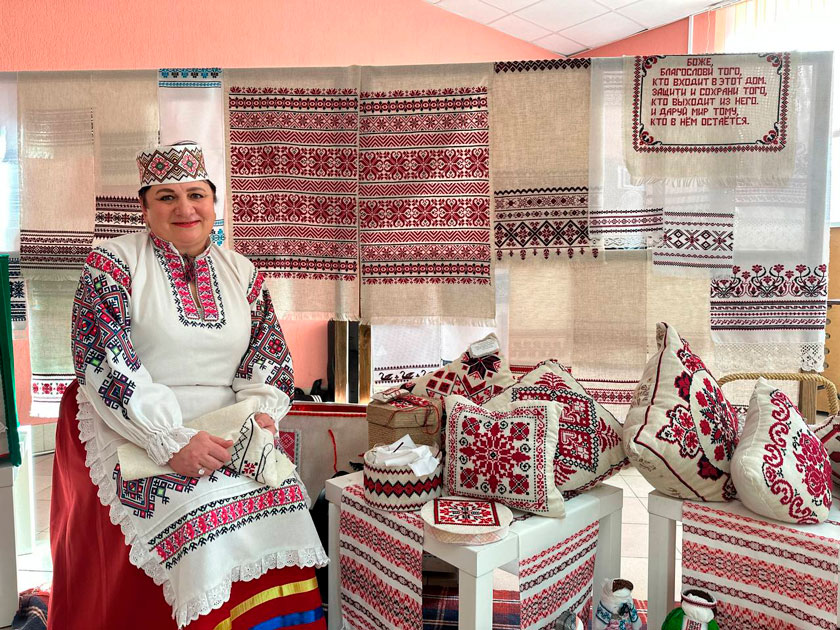 Особенным украшением праздника стала выставка «Пяшчота зямлі беларускай у жаночых далонях». Сколько души, таланта и мастерства вложено в каждую работу! Глядя на это великолепие, лишний раз убеждаешься: женщина умеет творить чудеса своими руками, будь то кулинарный шедевр, изящная вышивка или уютный элемент декора.
