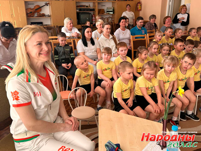 В детском саду 1 г. Ельска в рамках проекта «Гордость Ельщины — талантливые женщины» и республиканского проекта «Встреча на все 100!» к Году белорусской женщины состоялась встреча с известной спортсменкой Республики Беларусь, уроженкой Ельщины, победителем республиканского конкурса «Женщина года- 2025» в номинации «Сердце отдаю людям» Еленой Данилюк-Невмержицкой.