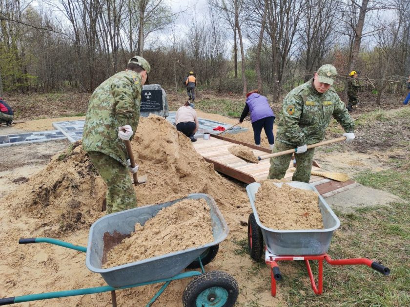 На объекте трудятся представители сельисполкома, лесхоза, КСЦ, школы и пограничной заставы. Совместными усилиями участники приводят в порядок территорию и обновляют мемориал.