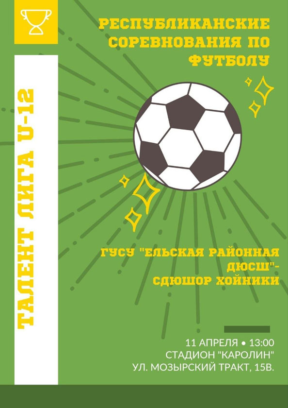 В Ельске пройдут Республиканские соревнования по футболу «Талант Лига»: ГУСУ «Ельская районная ДЮСШ» против СДЮШОР Хойники