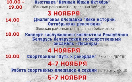 Какие мероприятия пройдут в Ельском районе ко Дню Октябрьской революции? 03.11.2023 Народны Голас12354Комментарии on Какие мероприятия пройдут в Ельском районе ко Дню Октябрьской революции? Смотрим афишу и планируем свое время. Продолжить чтение
