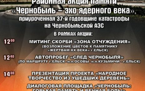 Районная акция памяти «Чернобыль — эхо ядерного века» пройдет 26 апреля. План мероприятий 26.04.202326.04.2023 Народны Голас4629Комментарии on Районная акция памяти «Чернобыль — эхо ядерного века» пройдет 26 апреля. План мероприятий Продолжить чтение