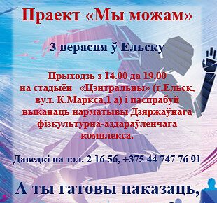 Проект «Мы можам» пройдет 3 сентября в Ельске. Ельчане, вы готовы сдать нормативы «на ура»? 31.08.202131.08.2021 Народны Голас911Комментарии on Проект «Мы можам» пройдет 3 сентября в Ельске. Ельчане, вы готовы сдать нормативы «на ура»? Продолжить чтение