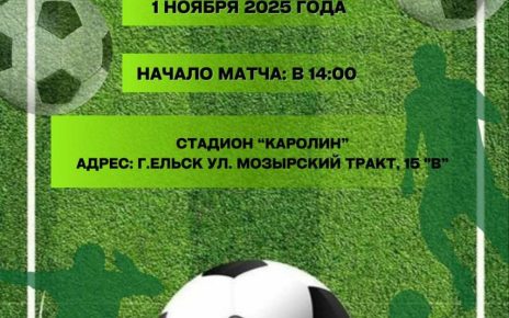 Товарищеский матч по футболу между командами ветеранов спорта г.Ельска и АБФФ Республики Беларусь состоится на стадионе «Каролин» 1 ноября 2025 года. Начало в 14.00