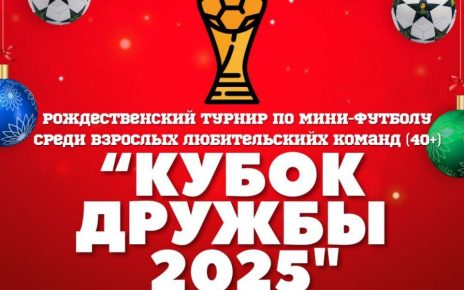 Рождественский турнир по мини-футболу «КУБОК ДРУЖБЫ 2025» пройдет в Ельске 13 декабря! «Кубок дружбы» объединит взрослых игроков, любителей футбола (40+) из Ельска, Мозыря, Житковичей, Столина и Ольшан. Не пропустите! Болеем за наших!