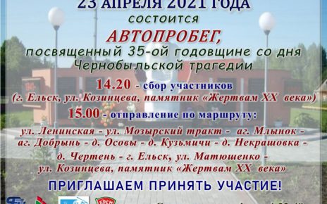 Сегодня в Ельске пройдет автопробег, посвященный 35-ой годовщине со дня Чернобыльской трагедии 23.04.202123.04.2021 Народны Голас809Комментарии on Сегодня в Ельске пройдет автопробег, посвященный 35-ой годовщине со дня Чернобыльской трагедии Продолжить чтение
