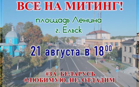 Сегодня в Ельске пройдет митинг «За Беларусь!». Начало в 18.00 21.08.202021.08.2020 Народны Голас1144Комментарии on Сегодня в Ельске пройдет митинг «За Беларусь!». Начало в 18.00 Продолжить чтение
