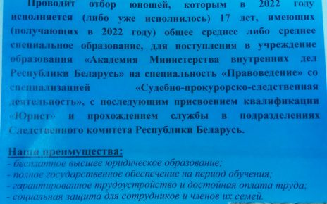 Управление Следственного комитета Гомельской области проводит отбор абитуриентов для поступления в Академию МВД 26.11.202126.11.2021 Народны Голас798Комментарии on Управление Следственного комитета Гомельской области проводит отбор абитуриентов для поступления в Академию МВД Продолжить чтение